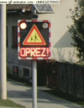 Znak se koristi u blizini škola, vrtića i drugih pj. prijelaza koje je potrebno dodatno zaštititi. Dostupna verzija OPREZ/ŠKOLA, OPREZ/VRTIĆ I OPREZ/PJEŠACI